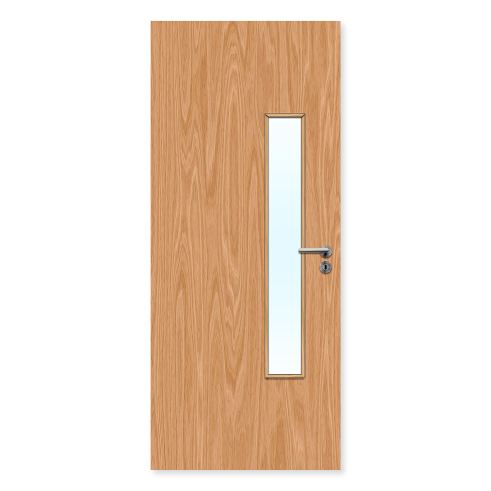 This single 30 minute fire door is glazed with a 150mm x 1150mm glass panel.