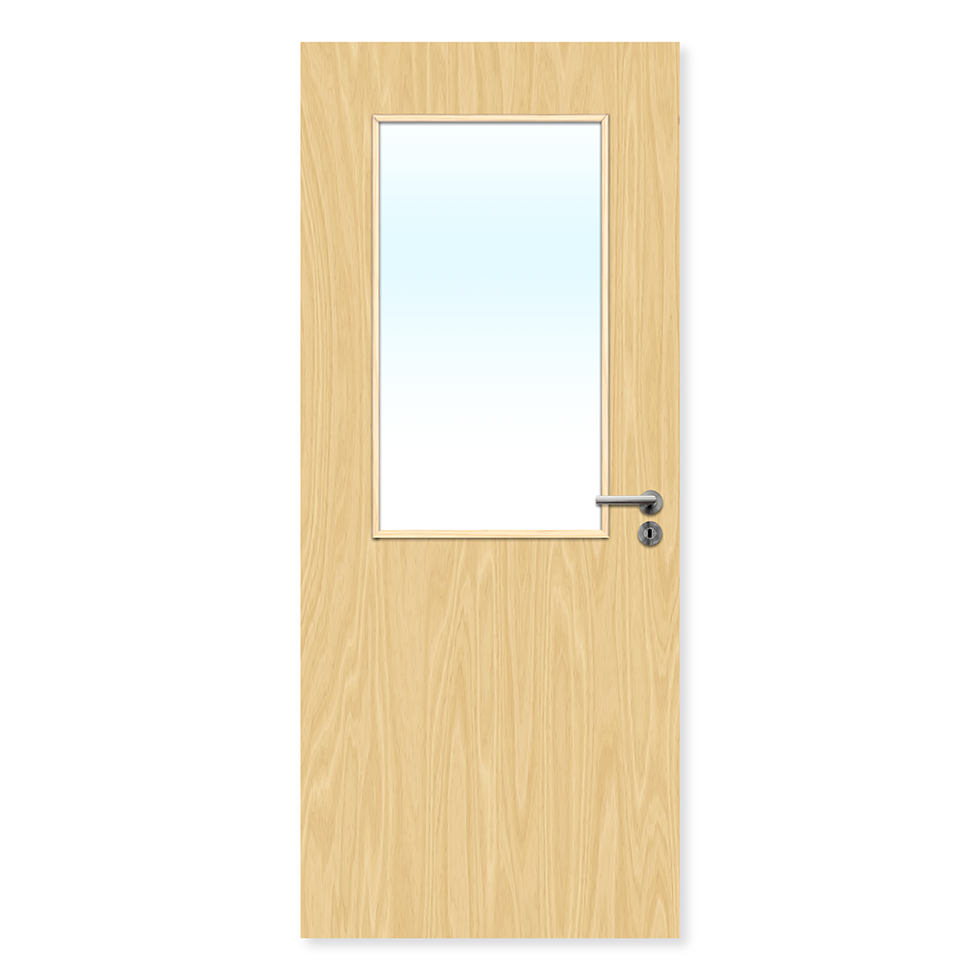 This single 30 minute fire door is glazed with a 508mm x 914mm glass panel.