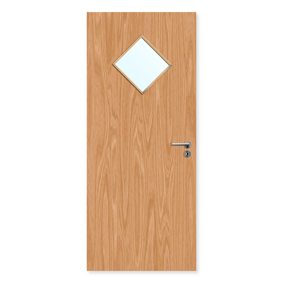 This single 30 minute fire door is glazed with a 450mm x 450mm glass panel.