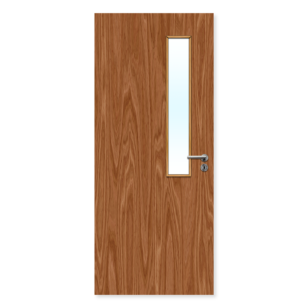 This single 30 minute fire door is glazed with a 150mm x 914mm glass panel.