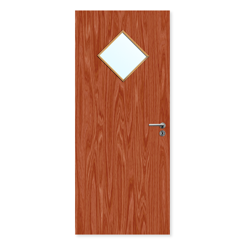 This single 30 minute fire door is glazed with a 450mm x 450mm glass panel.