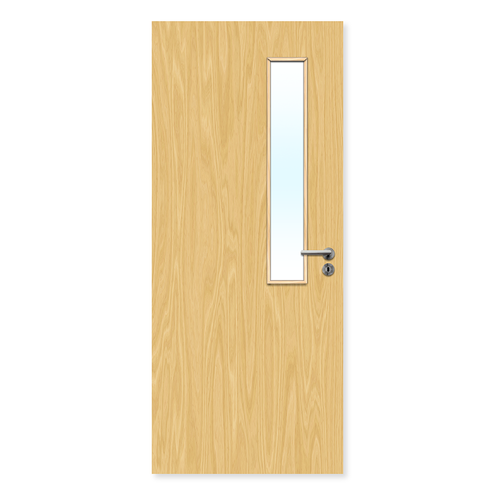 This single 30 minute fire door is glazed with a 150mm x 914mm glass panel.