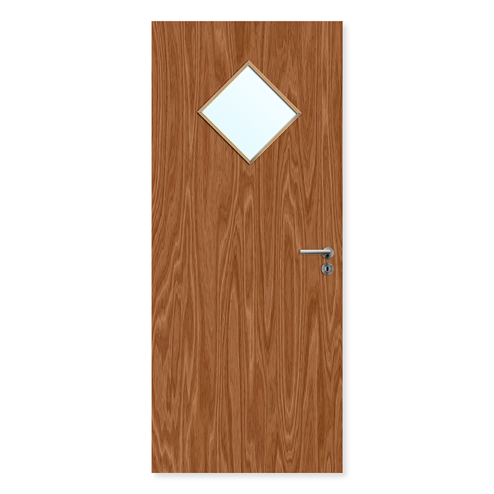 This single 30 minute fire door is glazed with a 450mm x 450mm glass panel.