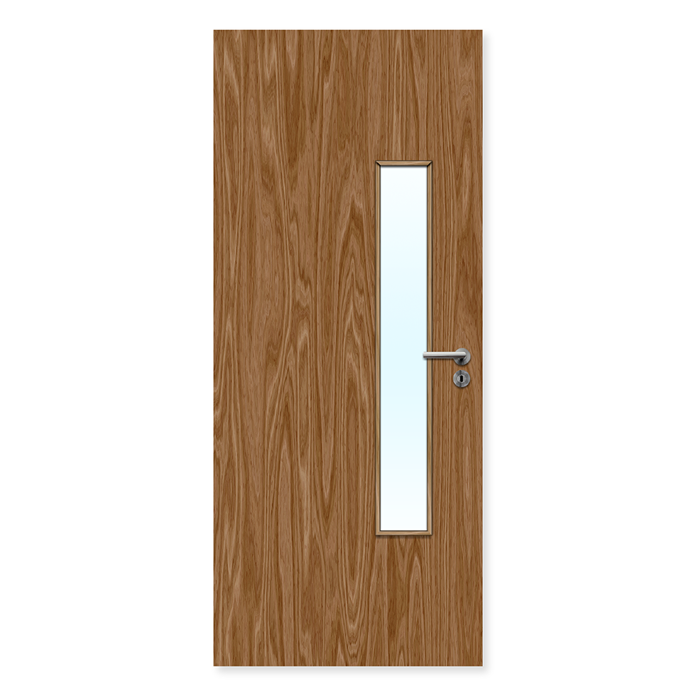 This single 30 minute fire door is glazed with a 150mm x 1150mm glass panel.